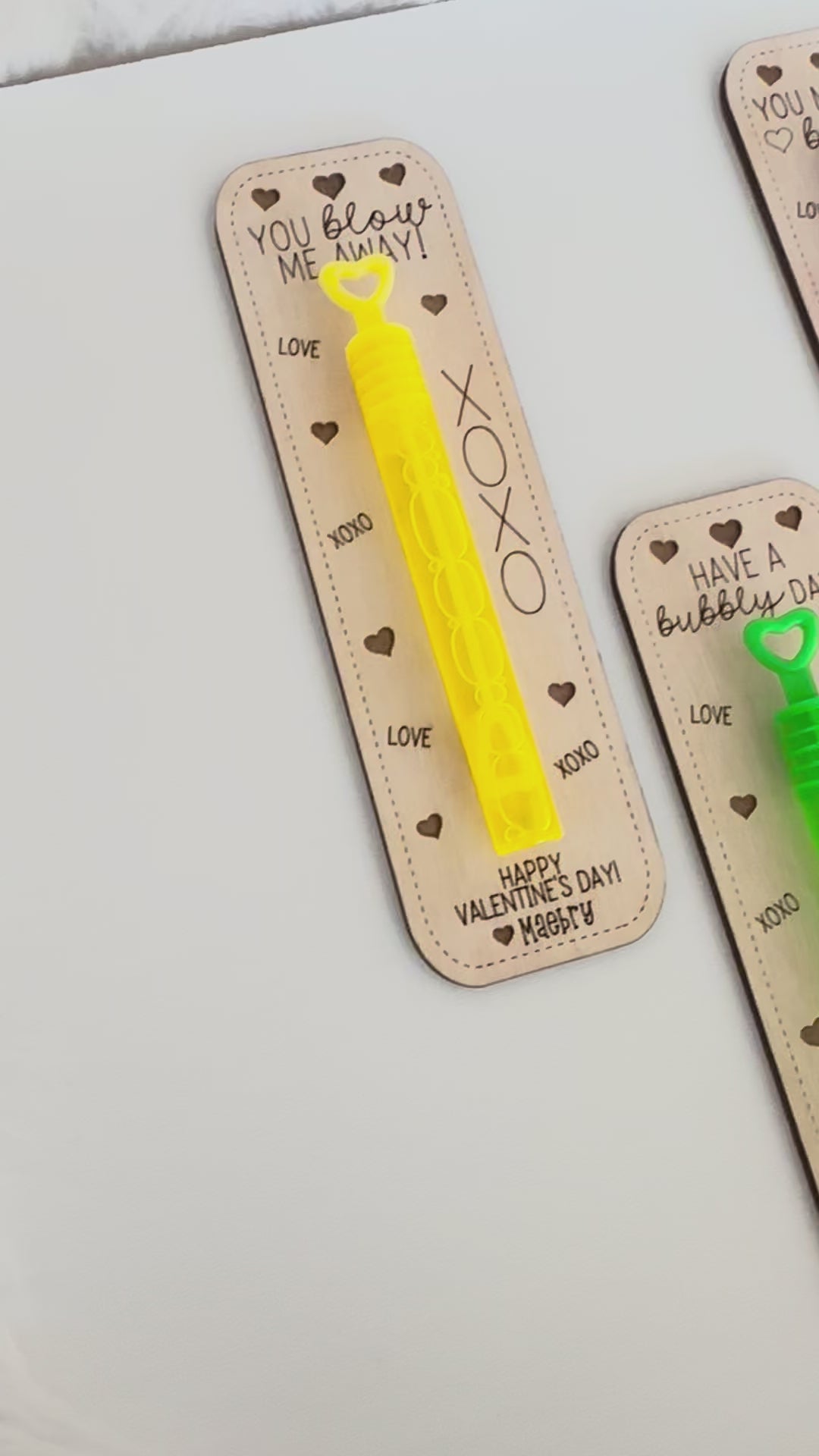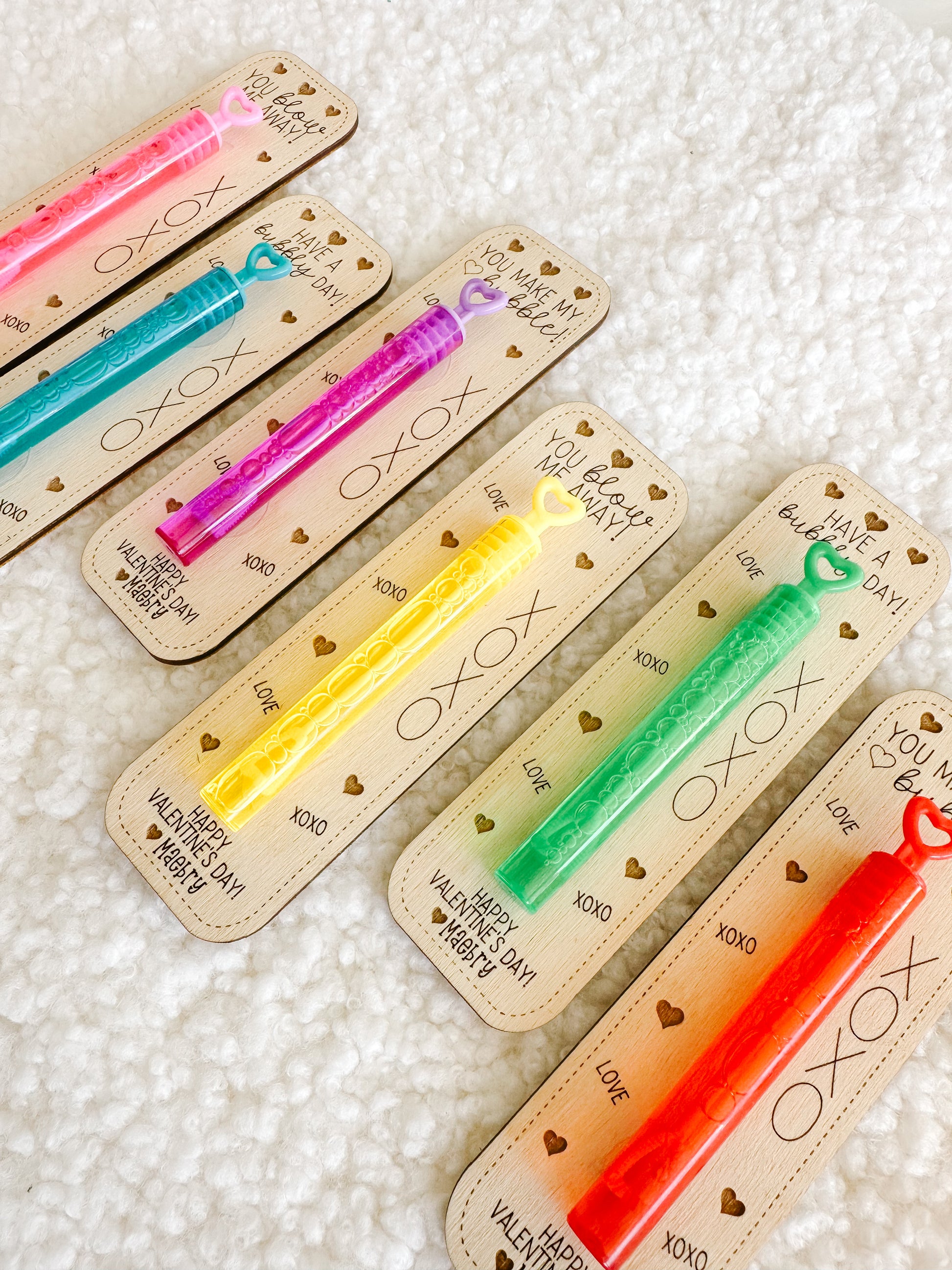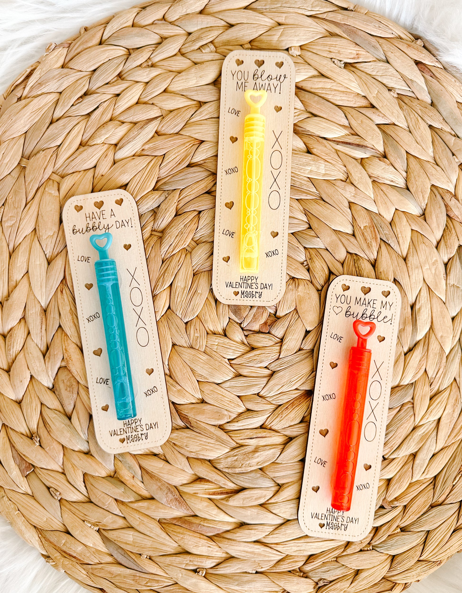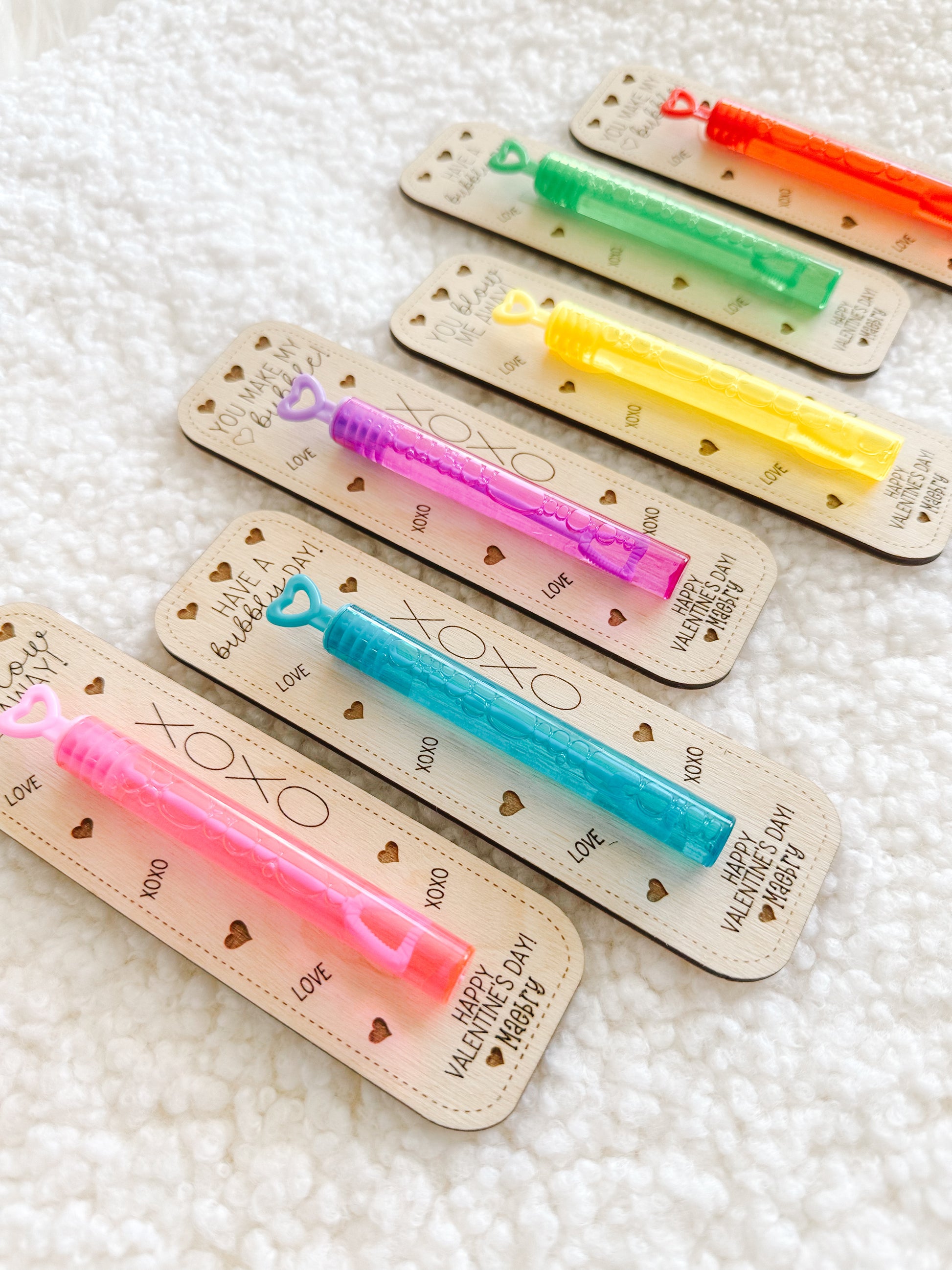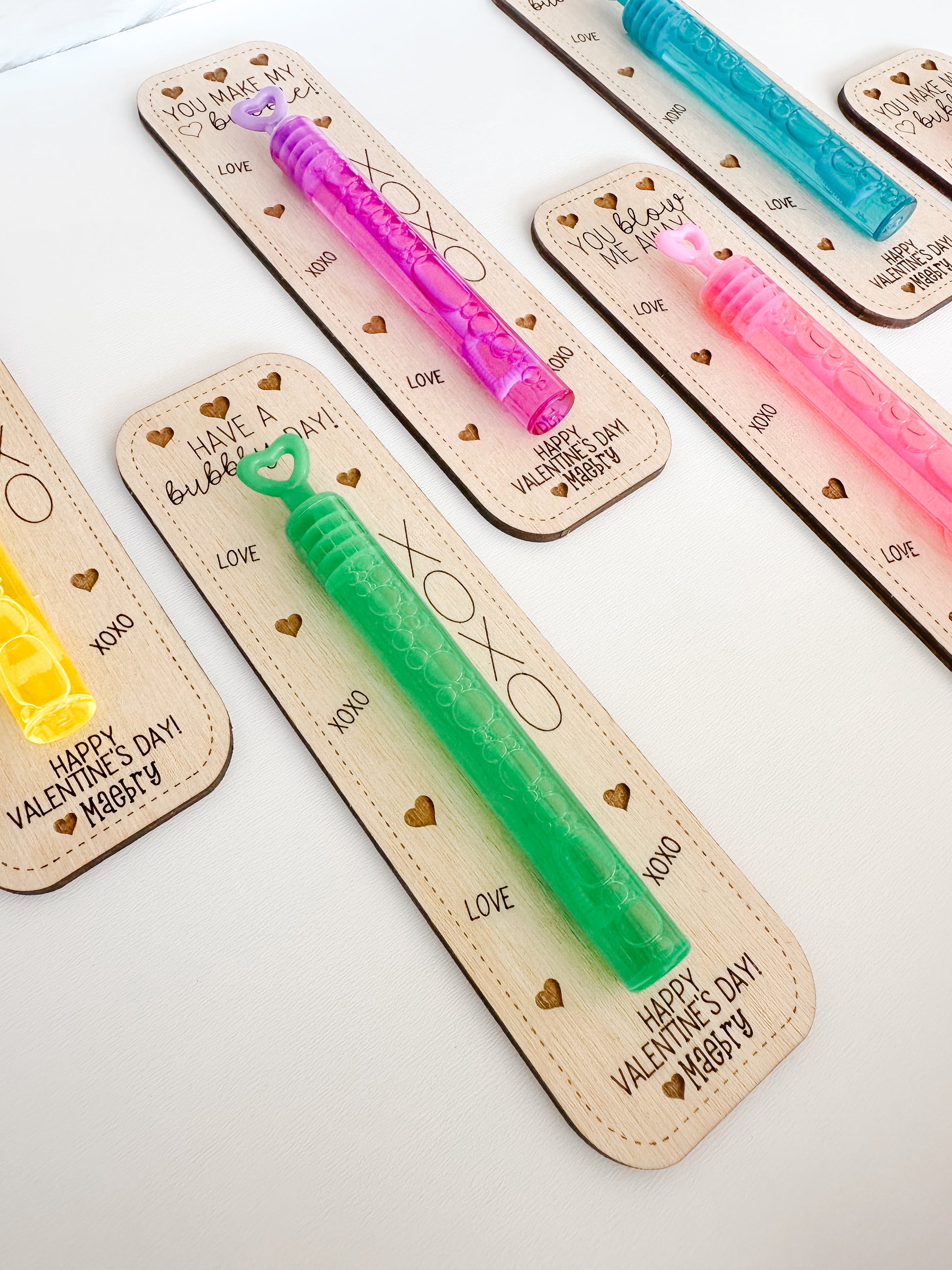 Make classroom Valentine exchanges extra special this year with these adorable personalized wooden bubble valentines!