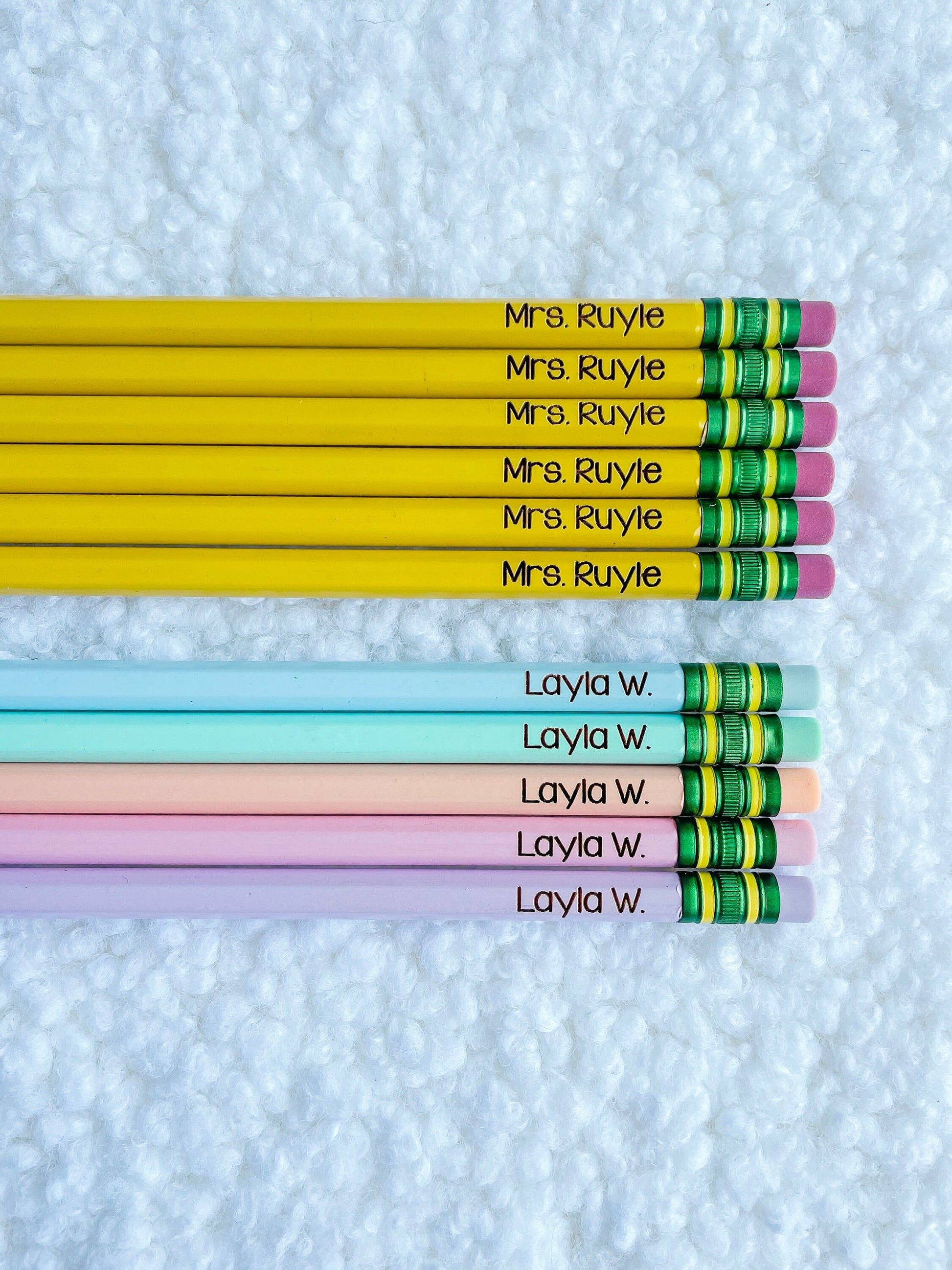 Need labeled school supplies? Or something unique to give a teacher? These personalized pencils are perfect! Engraved with precision on #2 Ticonderoga pencils (a.k.a., the GOOD pencils!).